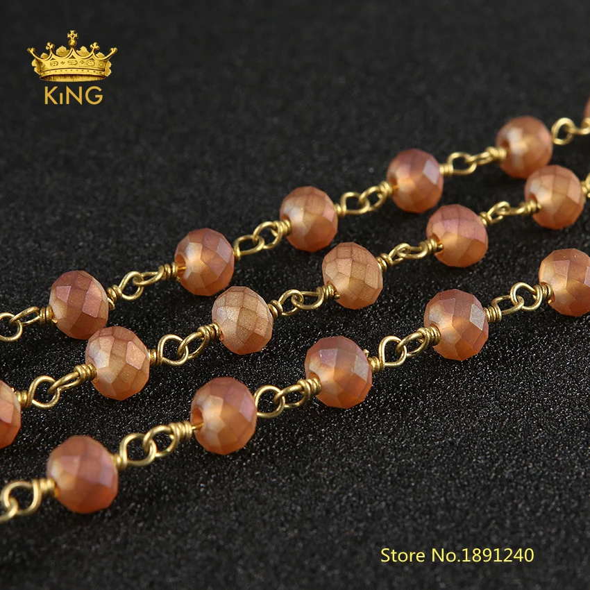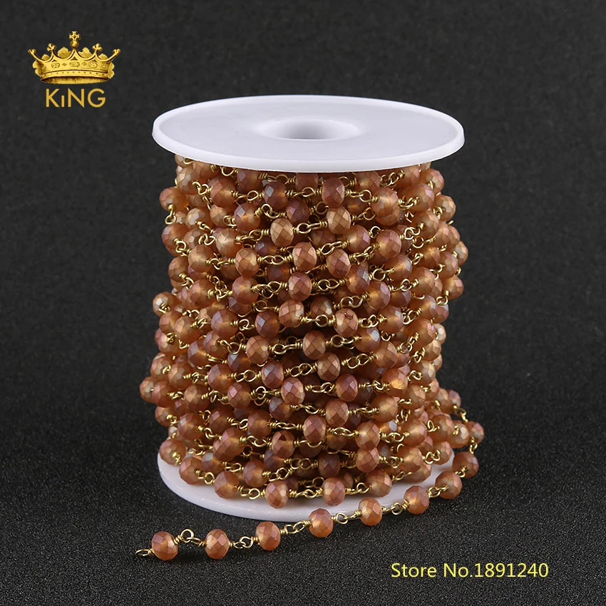 Best 5meters/lot 4x6mm Champagne Titanium Glass Wire Wrapped Frosted Matted Faceted Rondelle Glass Fashi