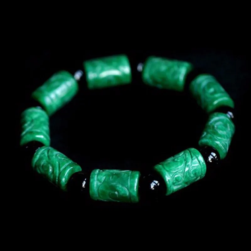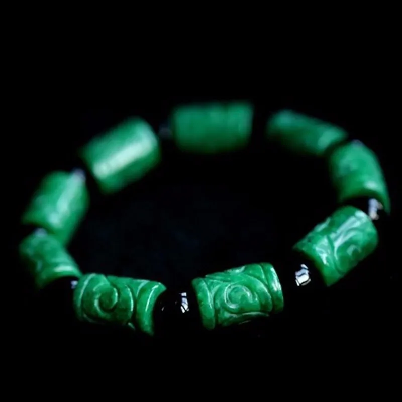 REVIEW TOP SELLER Natural green stone carved barrel beads Passepartout Bracelet Fashion Men Jewelry Bracelets Gifts