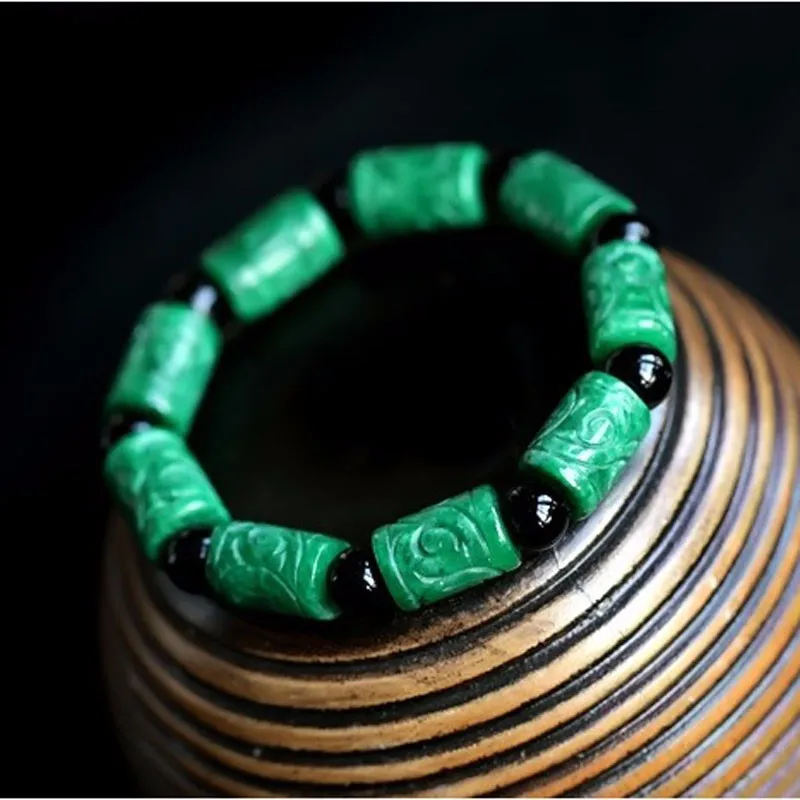 Best Natural green stone carved barrel beads Passepartout Bracelet Fashion Men Jewelry Bracelets Gifts