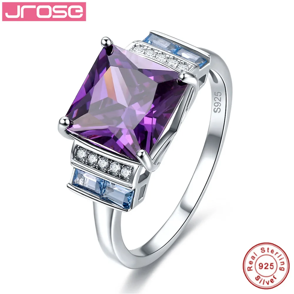HIGH QUALITY Jrose 5.5ct red & Blue CZ Multicolor New Women Fine Jewelry Engagement Rings Solid 100% 925 Sterlin