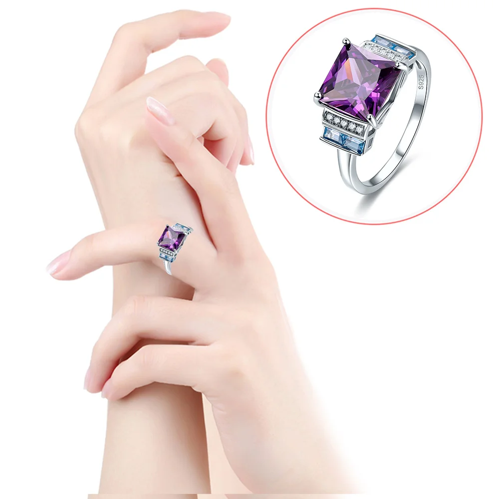 Jrose 5.5ct red & Blue CZ Multicolor New Women Fine Jewelry Engagement Rings Solid 100% 925 Sterlin