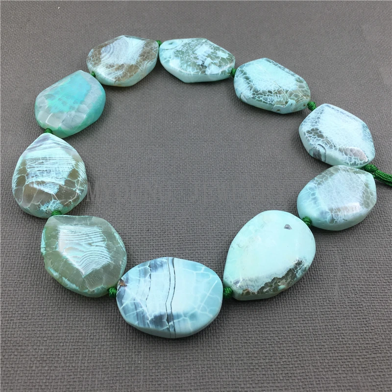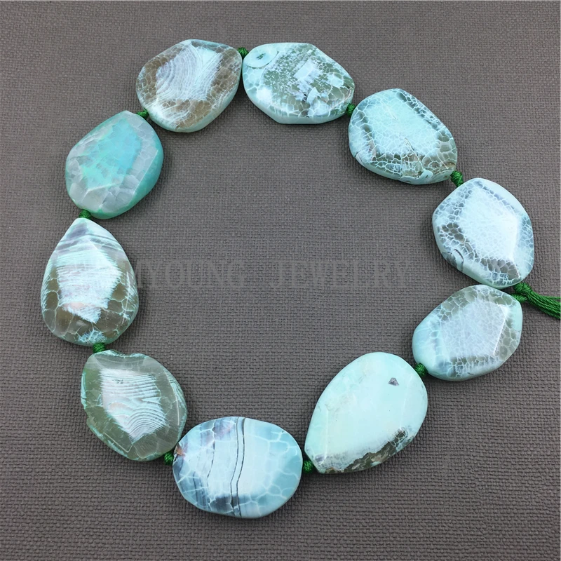 MY1130 Oval Faceted dragon vein agates Surrounded with Green Slab Slice Drilled Beads For DIY Jewel