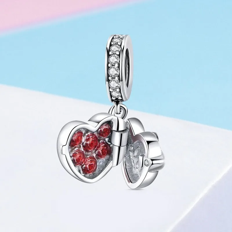 BEST Romantic New 925 Sterling Silver Love Heart Gift Box Pendant Charms fit Women Necklaces Bracelets D