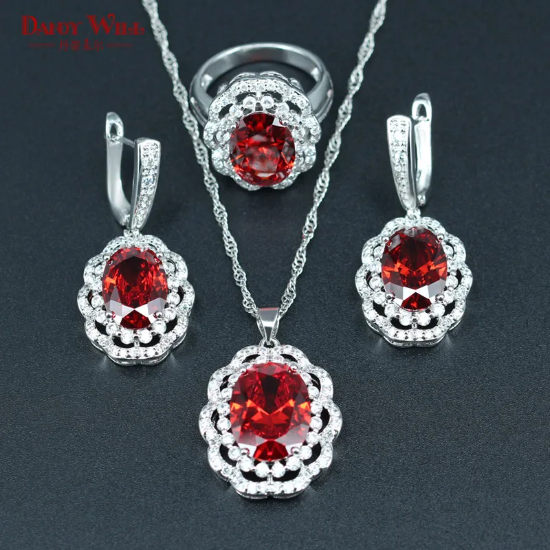 Best Seller DANDY WILL 925 Silver Stamp Bridal Jewelry Sets For Women Red Crystal Silver Color Necklace/Earring