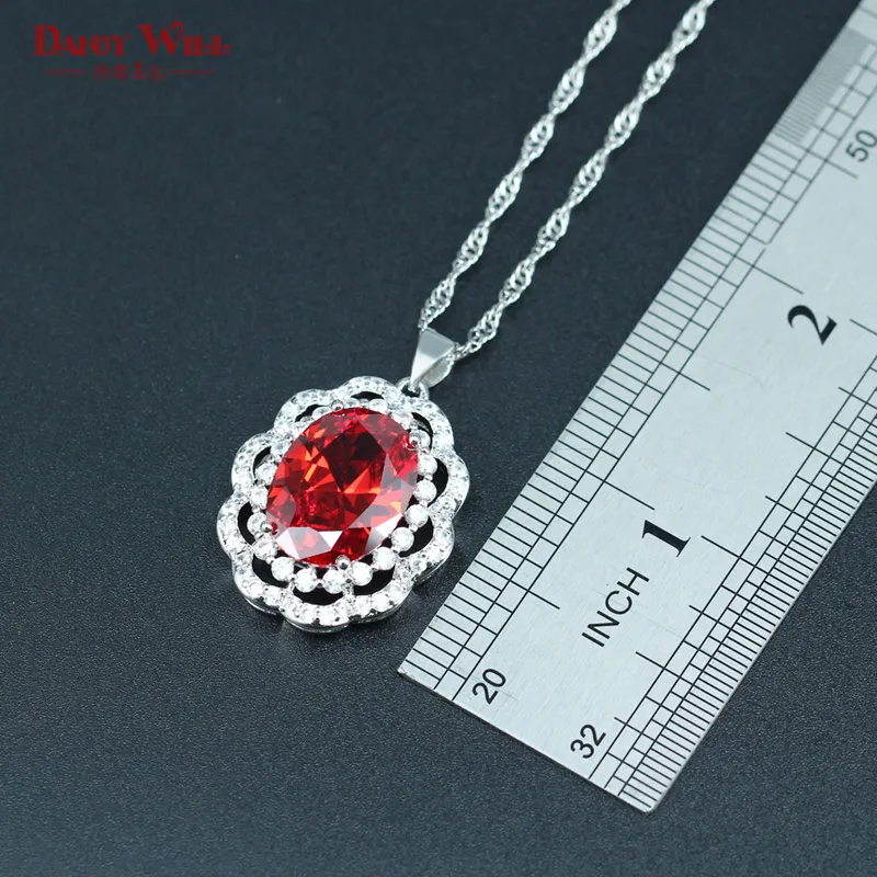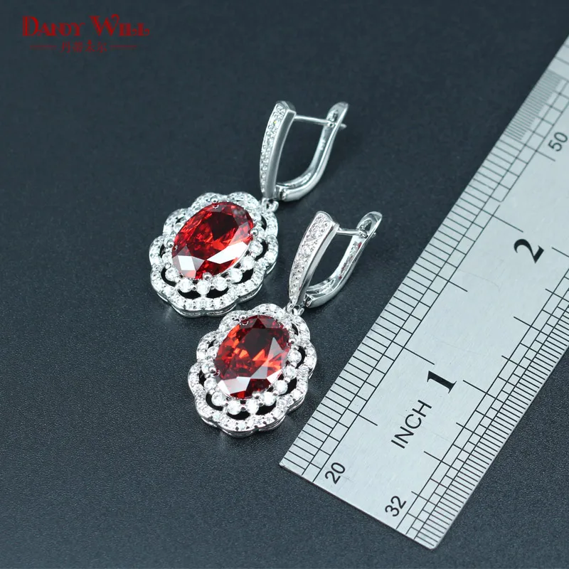 HIGH QUALITY DANDY WILL 925 Silver Stamp Bridal Jewelry Sets For Women Red Crystal Silver Color Necklace/Earring