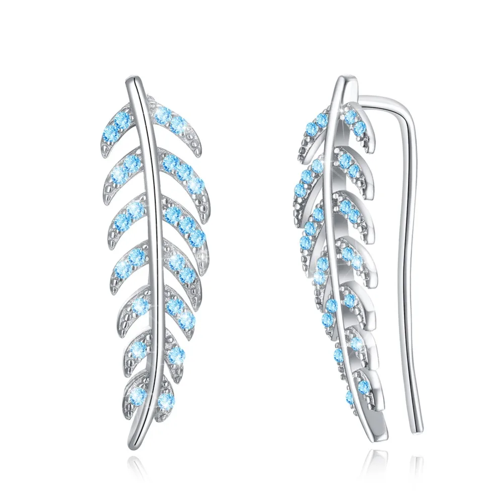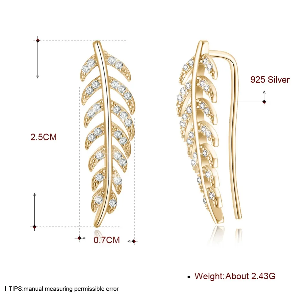 IOGOU Yellow /White Gold Color 925 Sterling Silver Leaves Feather Stud Earrings With Solitaire CZ F