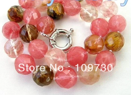 HIGH QUALITY Jewelry 002286 14mm Watermelon & brown Color Faceted Quartz Stone Necklace