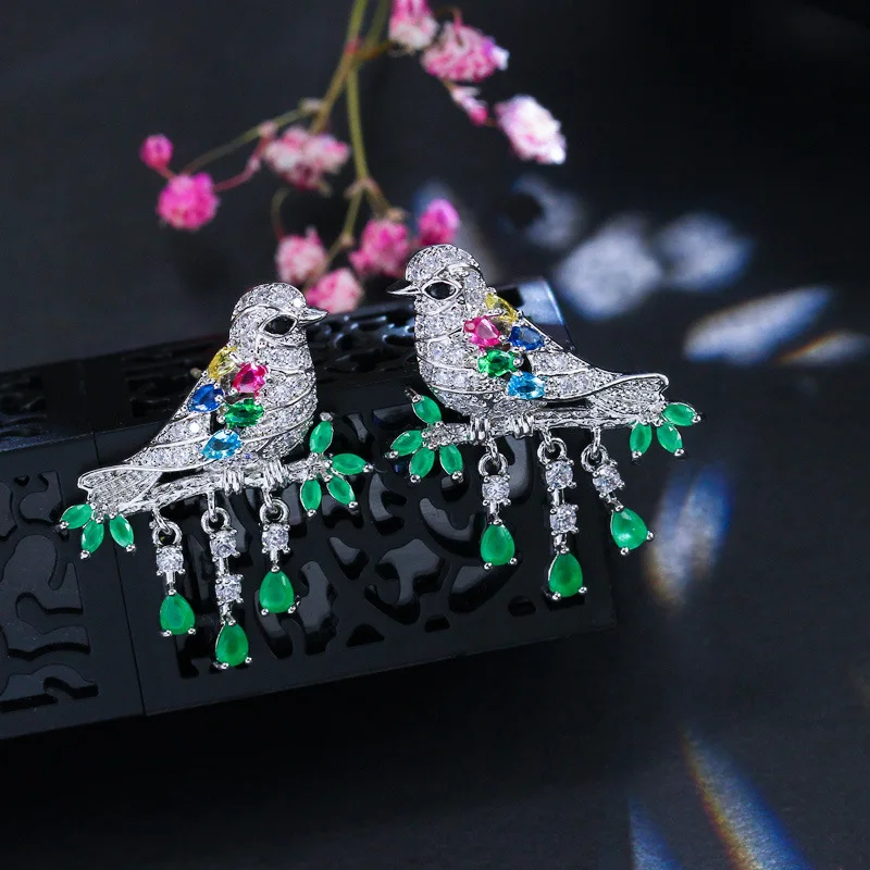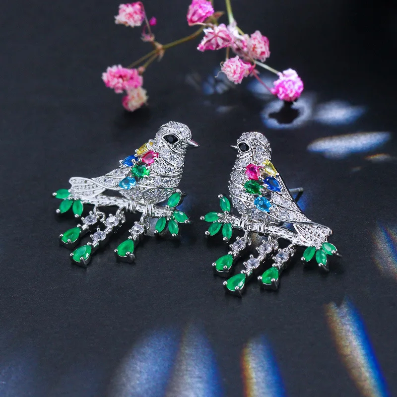Luxury Fashion High Quality Earrings For Women S925 Pure Silver Needle Bird Color Crystal Earrings