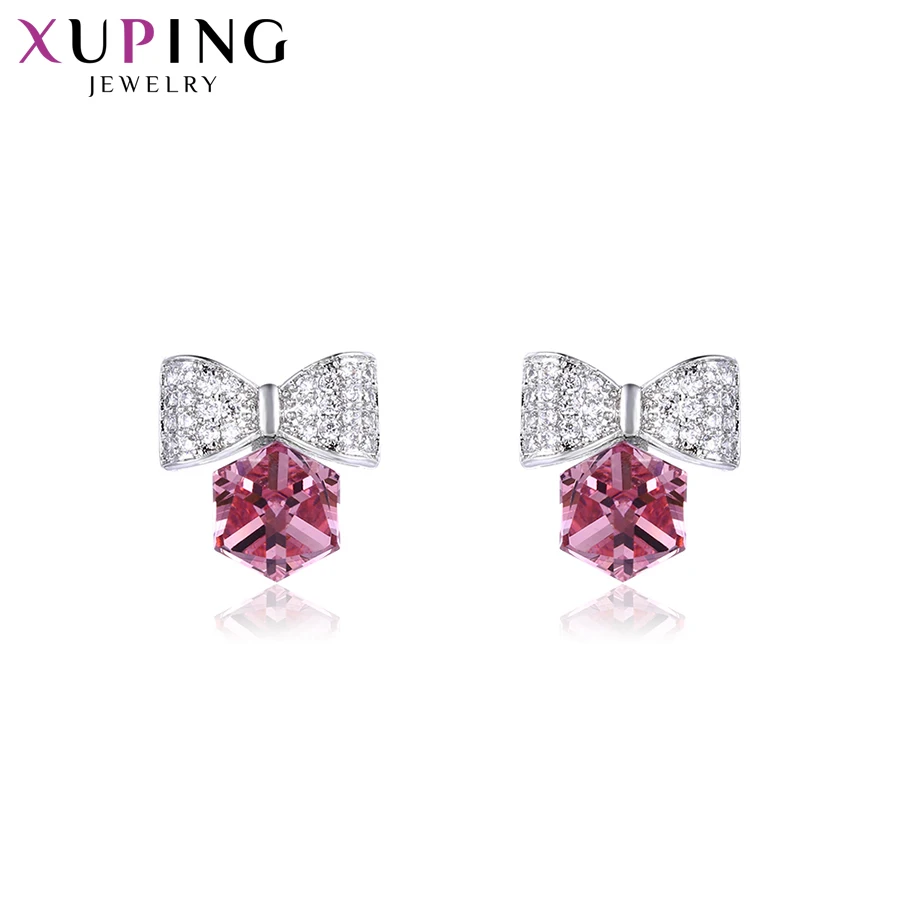 Review Top Xuping Bowknot Shape Studs Earrings Elegant Crystals from Swarovski Special Fashion Jewelry for Lad
