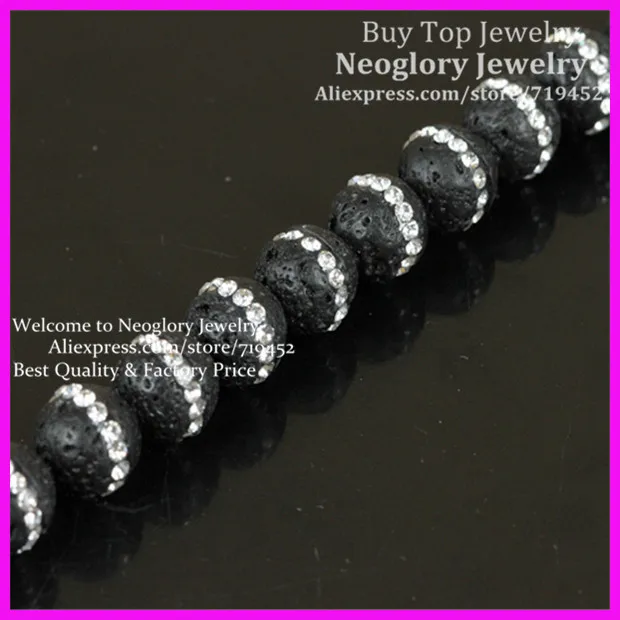 ORIGINAL 1strand Natural Black Volcanic Lava Stone Loose Round Beads with RhinestoneSparkling Rhinestone 10m