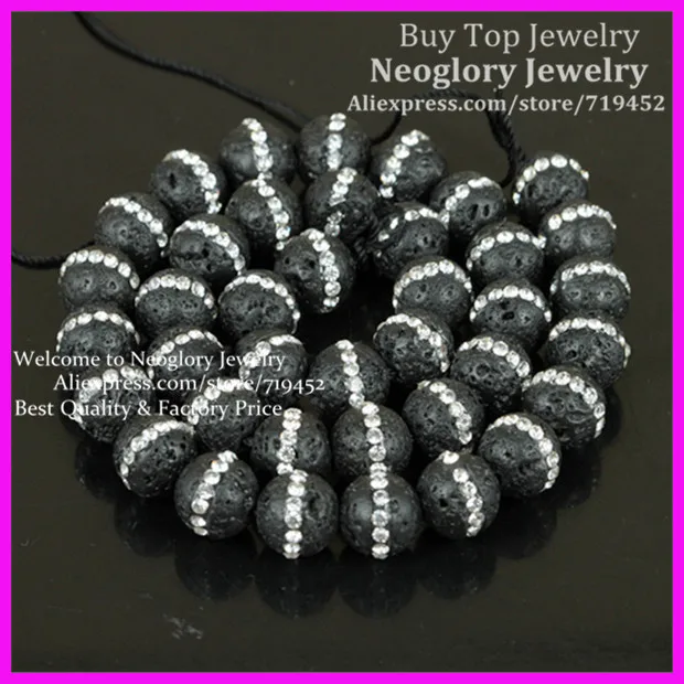 REVIEW TOP SELLER 1strand Natural Black Volcanic Lava Stone Loose Round Beads with RhinestoneSparkling Rhinestone 10m