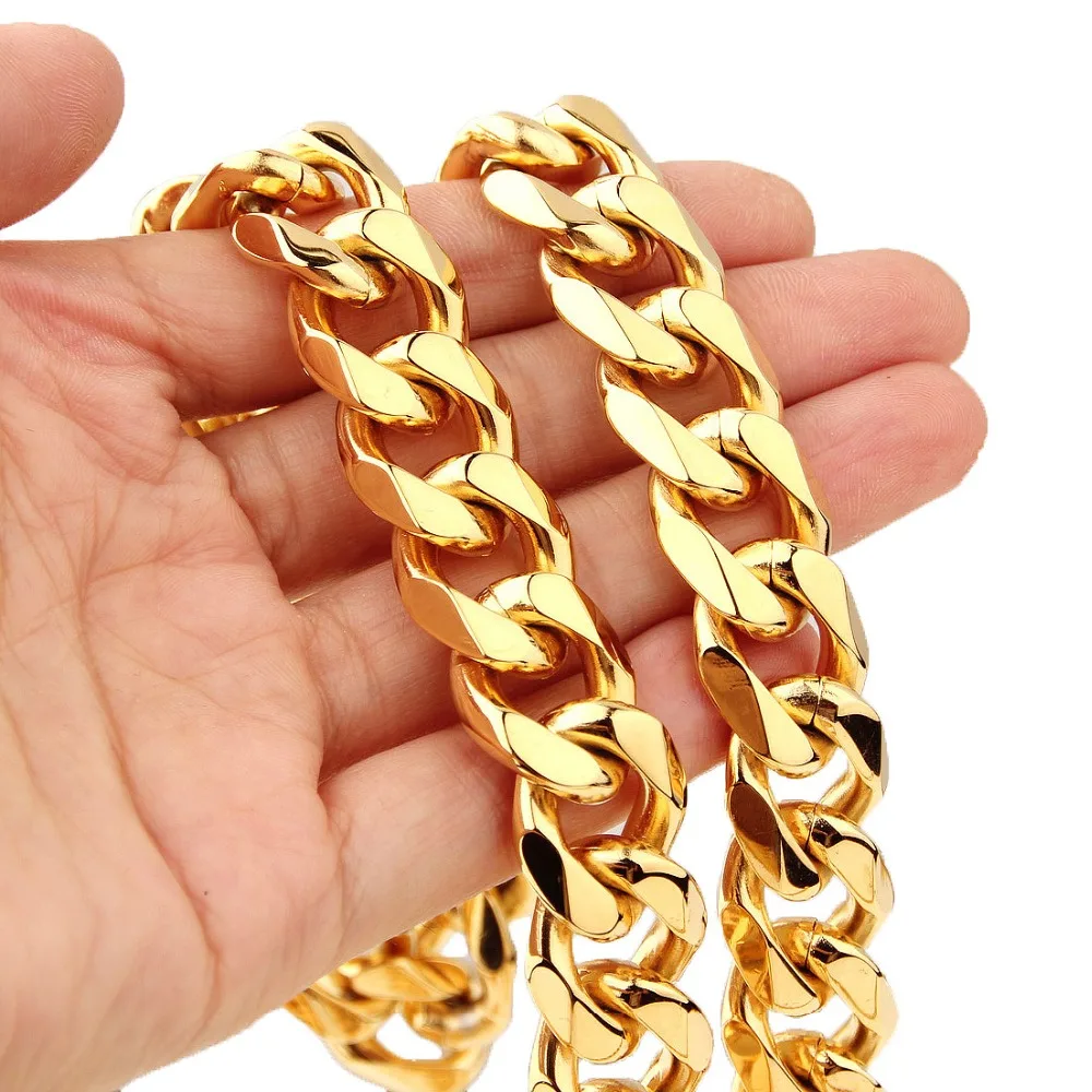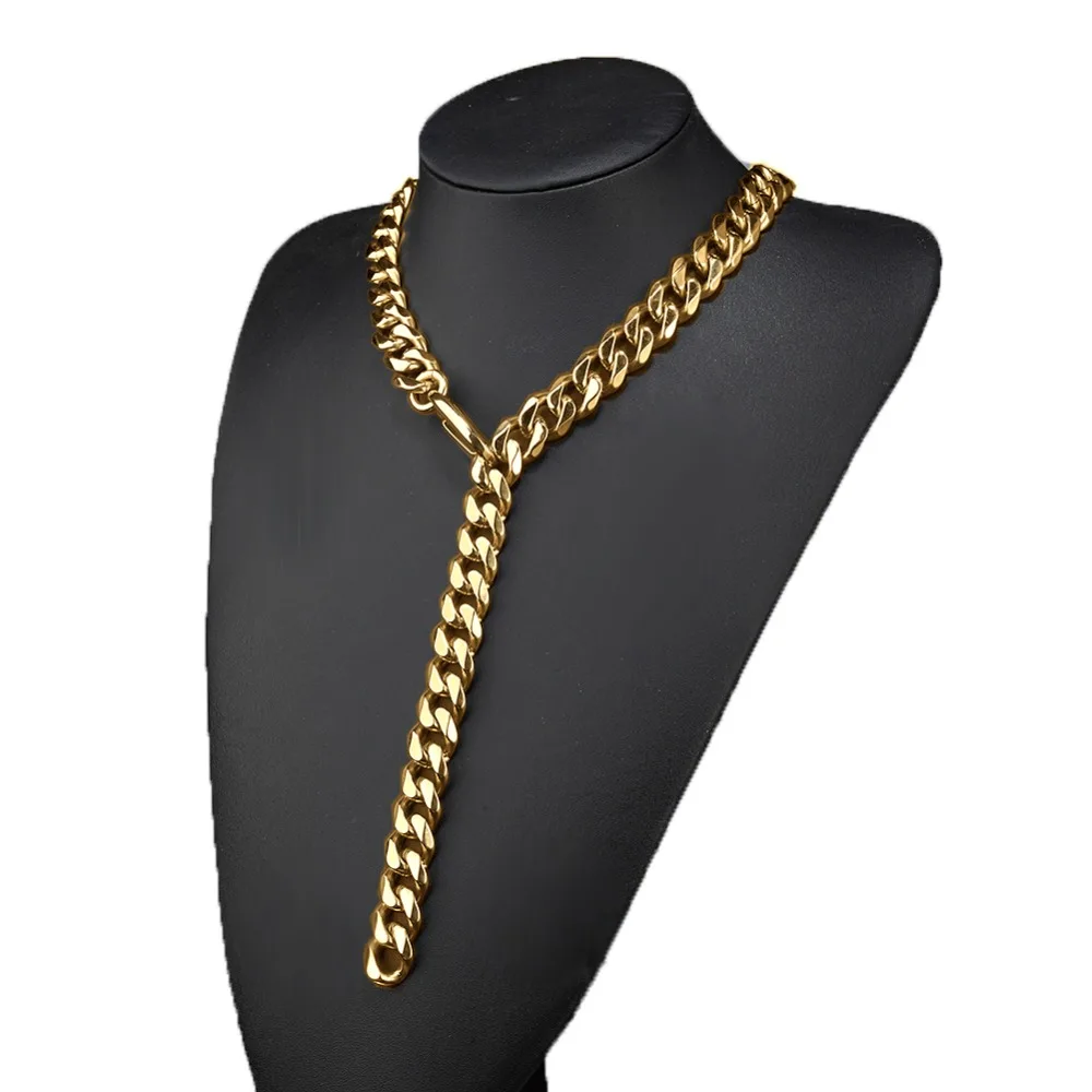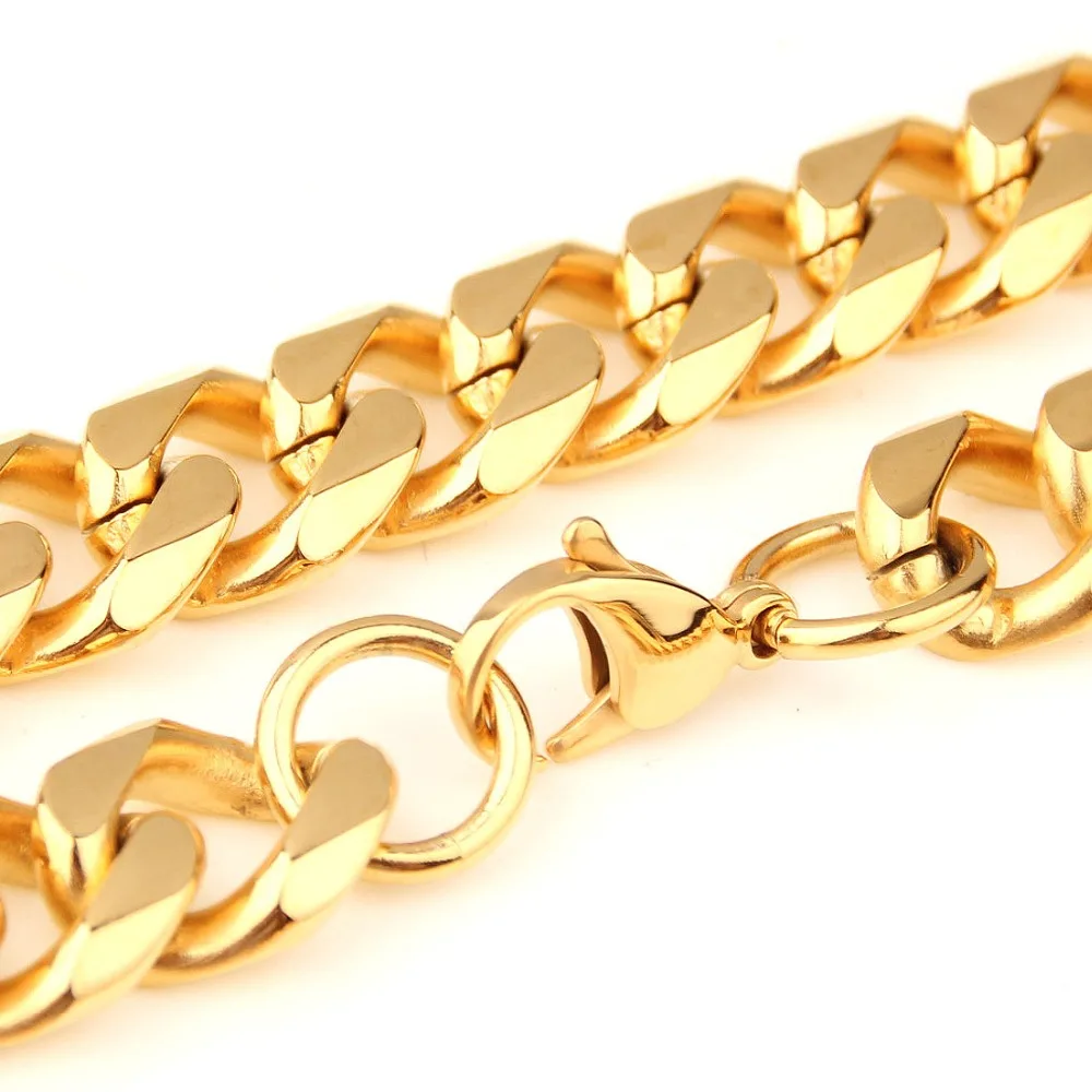 ORIGINAL Mens Gold Stainless Steel Curb Cuban Link Hip Hop Rapper Necklace Miami Chain With Tail Birthday Je