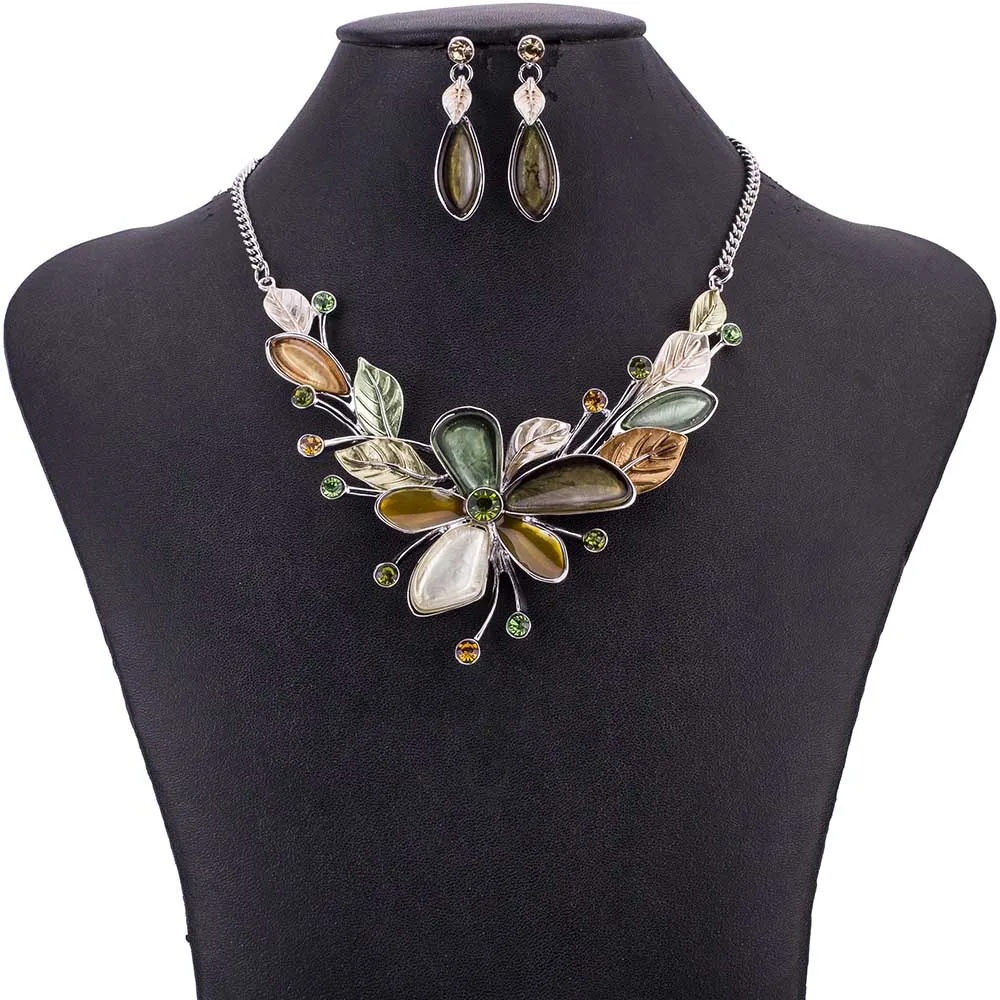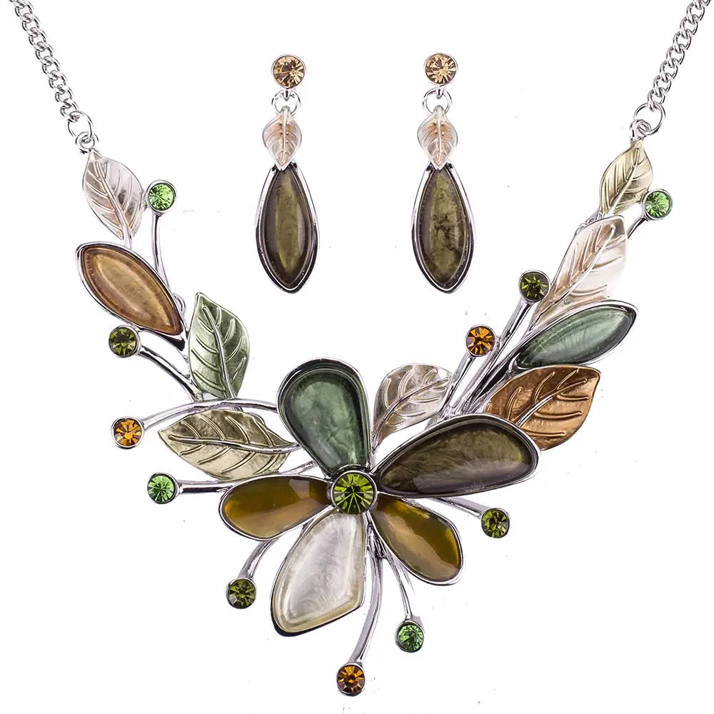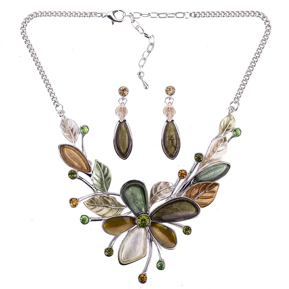 MS1505051 Spring Green Flower Jewelry Sets Imitate Silver Plated Necklace High Quality Lead&Nickle