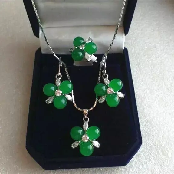 REVIEW TOP SELLER wholesale fashion new design jewelry 3 greenNatural jade beads flower pendant earrings & ring(#7.8.
