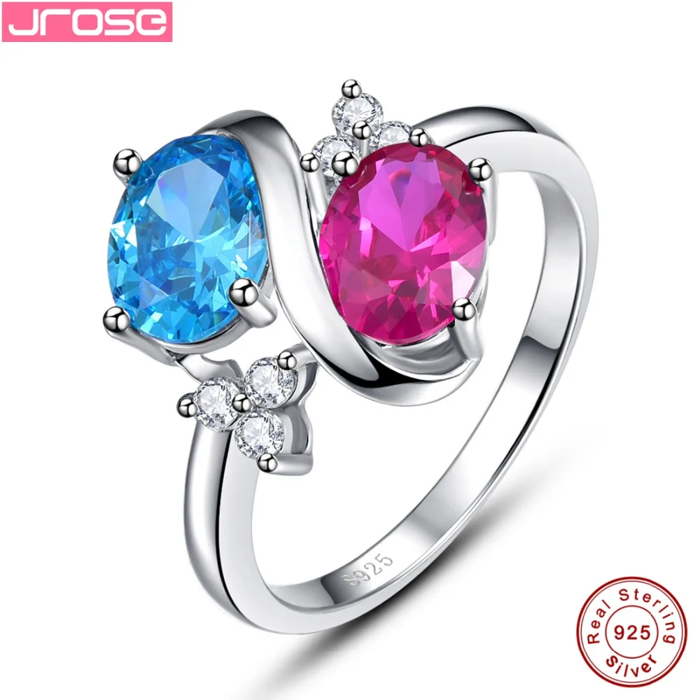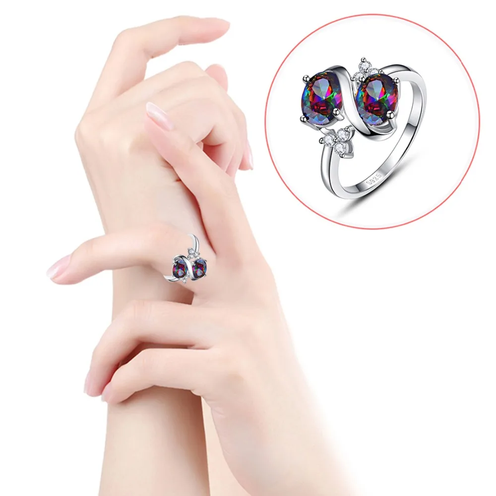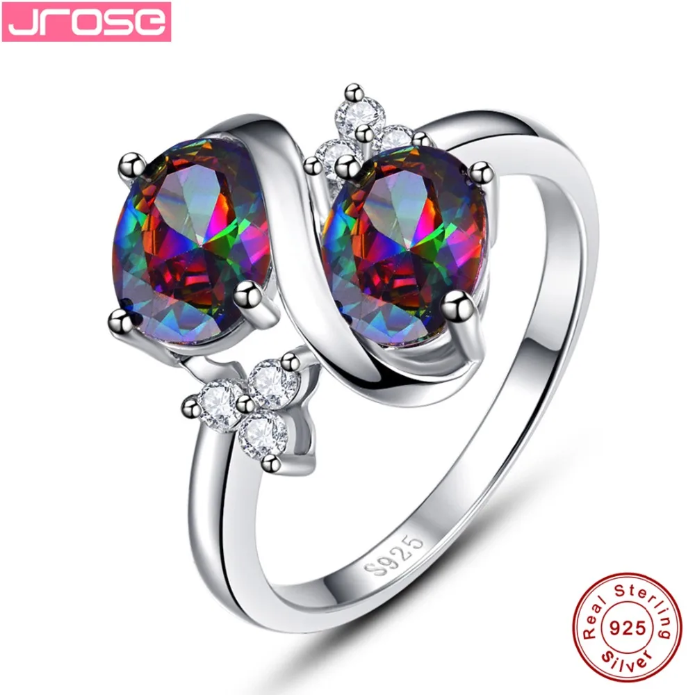 TOP Jrose Vintage Huge 3.1CT Oval Cut 2- S Style Mystic Rainbow CZ 100% 925 Sterling Silver Ring Women