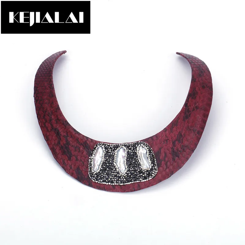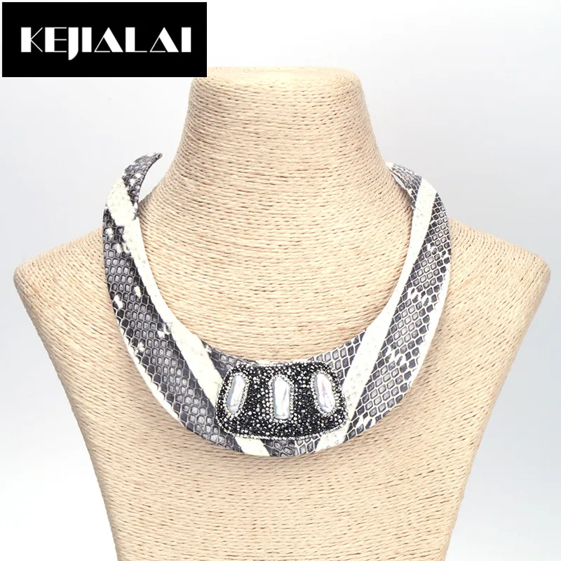 TOP KEJIALAI Punk Style Torques Choker Necklace for Women Alloy with Leather Pearl Paved with Rhineston